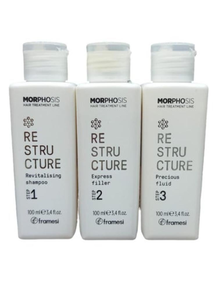 يقدم عناية مركزة للغاية عند تلف الشعر حيث يكون الشعر باهتًا أو بلا حياة، ولا يسبب ضرر. هذا يتطلب مجموعة إعادة بناء فيلر الشعر موروفوسيس من فرامزي هذه المجموعة هي علاج مكثف محترف لإعادة بناء الشعر وتغذيته وإعادة قوته ولمعانه مرة أخرى. مجموعة إعادة بناء موموموفوسيس من فرامزي مكونة من ثلاث علاجات مختلفة. وهي شامبو مجدد، فيلر سريع وسائل فريد من نوعه. العلاج في خطوات. الخطوة 1 - شامبو مجدد ينقي الشامبو المغذي بعمق من المواد النباتية السطحية التي تطهر الشعر بعمق مع درجة الحموضة الحمضية؛ ويجعل الشعر ناعمًا ومرطّبًا، جاهزًا للعلاجات اللاحقة. تغذي المكونات الشعر وفروة الرأس! الخطوة 2 - تجربة الفيلر جل لإعادة بناء الشعر وألياف الشعر بالإصلاح العميق. فهو يجعل الشعر أكثر كثافةً وامتلاءً وأكثر إحكامًا ويحسن من الملمس بشكلٍ مباشر. غني بالكولاجين البحري وبروتينات اللؤلؤ والسليكا وفيتامين اي وحمض الهيالورونيك وبروتين القمح والجلسرين. منتج مغذي رائع بشكل عام! الخطوة 3 - السوائل الكثيفة علاج مجدد مكثف. يعيد الجمال الطبيعي لألياف الشعر ومرونتها. وبفضل الشعر فإن أفضل المكونات تفسد بحيث تعمل المكونات النشطة على زيادة فوائد العلاج. يجعل الشعر لامعًا وناعمًا للغاية. تم مزجها من مكونات فريدة مثل الكولاجين البحري، وبروتينات اللؤلؤ والسيليكون وفيتامين اي وحمض الهيالورونيك المرطب وراتنج نباتي متجدد 100% لتغليف الشعر. تعد مجموعة إعادة بناء الشعر موروفوسيس علاجًا فريدًا ومغذيًا للشعر. بكل تأكيد، أي نوع من أنواع الشعر سيظهر اللمعان والقوة والحيوية تتكون مجموعة فراميسي من ثلاث زجاجات، شامبو منشط 100 مل واكسبرس فيلر 100 وفيلر مكثف 100 مل.